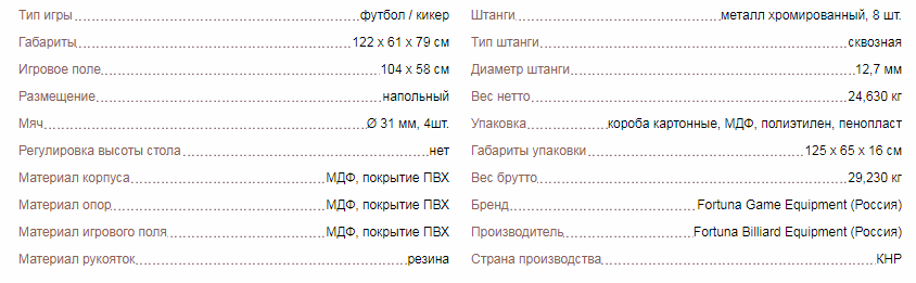 Игровое поле изготовлено из МДФ с виниловым покрытием, которое защищает поверхность поля от воздействия влаги, царапин и других повреждений. На металлические штанги нанесено хромированные покрытия для защиты от ржавчины.
