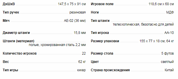 Этот замечательный стол прекрасно подходит для веселого времяпрепровождения! Он оборудован домкратами для того, что бы вы смогли выставить стол по уровню, а на бортах расположен водный уровень, с помощью которого вы поставите стол ровно и в последствии будете следить за правильным положением стола. Телескопическая конструкция штанг убережет Вас и Ваших соперников от риска случайного травмирования. Изящные ноги, строгие линии бортов и приятная расцветка будет радовать Ваш глаз, а азарт игры и ни с чем несравнимое чувство победы - Вашу душу.