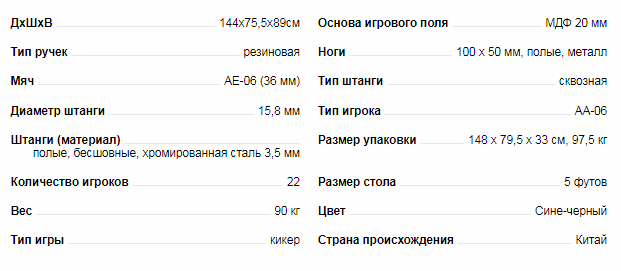 Не смотря на свои весомые во всех смыслах слова характеристики, стол не выглядит массивно. Модель можно считать собратом кикеров «Marsel» и «Pro Sport», но в более легком дизайне.