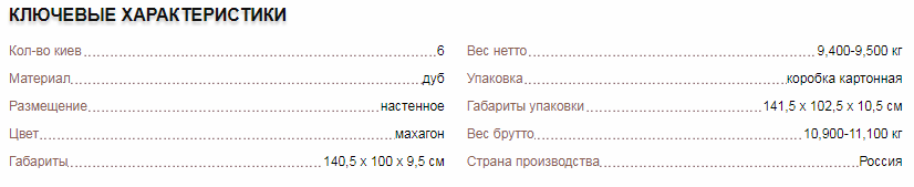 Модель предназначена для компактного хранения 6-ти киев в вертикальном положении, шаров для бильярда, мела и треугольника. Для треугольника предусмотрен крюк в нижней части киевницы. Шары размещаются в продольных нишах на горизонтальных полочках.