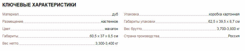 Полка изготовлена из массива дуба, который является прочным и надежным материалом, благодаря чему обеспечивается длительный срок эксплуатации полки. Древесина дуба прекрасно переносит перепады температур и влажности, не коробится и не трескается.