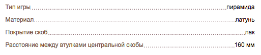 Набор скоб для луз «Чемпион» изготовлен из высококачественной латуни, покрытой лаком. Комплект состоит из шести скоб: четырех для угловых луз и двух - для средних, предназначенных для установки на борта бильярдного стола для русской пирамиды. Расстояние между монтажными втулками в обоих случаях составляет 160 мм. Продукт произведен в России.