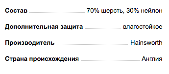 Вместе с этим, сукно пропитано специальным составом, который задерживает на поверхности грязь и влагу.