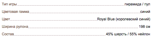 Цвет Royal Blue (королевский синий) - дизайнерское решение для бильярдного сукна (ВНИМАНИЕ! Оттенок цвета на изображении может отличаться от оттенка реального образца ткани из-за особенностей цветопередачи Вашего монитора).