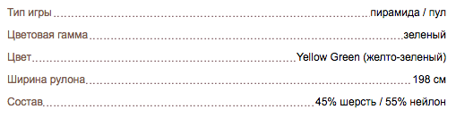 Цвет Yellow Green (желто-зеленый) - традиционный, наиболее популярный цвет бильярдного сукна (ВНИМАНИЕ! Оттенок цвета на изображении может отличаться от оттенка реального образца ткани из-за особенностей цветопередачи Вашего монитора).