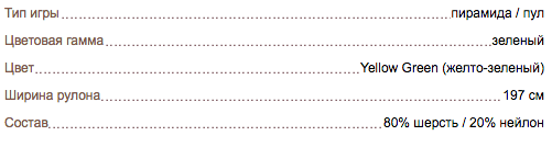 - особая финишная обработка сукна защищает от появления пятен или следов после ударов массе или прыжков.;