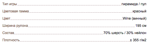 - Гладкая поверхность сукна. Благодаря точному соотношению качественного состава ткани и уникальному плетению создается идеально гладкая поверхность для стабильного скольжения шара, соблюдения точности траектории движения и развития наибольшей скорости скольжения с максимально равномерным вращением, что способствует достижению идеального коэффициента трения шара о сукно.
