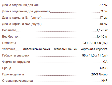 Тубус имеет жесткую конструкцию, предохраняющую кий от нежелательного внешнего воздействия. Поверхность выполнена из прочного водоотталкивающего винила с текстурой "под трикотаж", легко поддающегося чистке и не требующего специального ухода. Внутри тубус имеет мягкий подкладочный слой из синтетической ткани, обеспечивающий хорошую амортизацию при транспортировке для дополнительной защиты кия от механических повреждений. Для предохранения нижней части тубуса от преждевременного истирания на дне имеются металлические заклепки, на которые удобно ставить тубус, чтобы упаковать или достать кий.