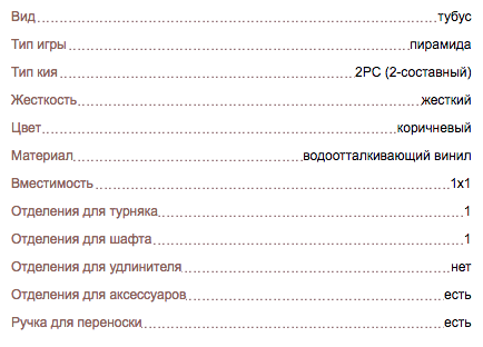 Уникальный тубус для одного двусоставного кия для русской пирамиды. Такое изделие способно покорить сердце игрока, увлекающегося стилистикой Дикого Запада. Выполненный из прочного винила с имитацией кожи аллигатора, тубус стилизован под чехол для орудия коренного жителя Северной Америки. В конструкции предусмотрено все самое важное: отделение для шафта, отделение для турняка, наружный карман для мелких бильярдных аксессуаров и приспособления для транспортировки: ручка и наплечный ремень. Все по делу - ничего лишнего.